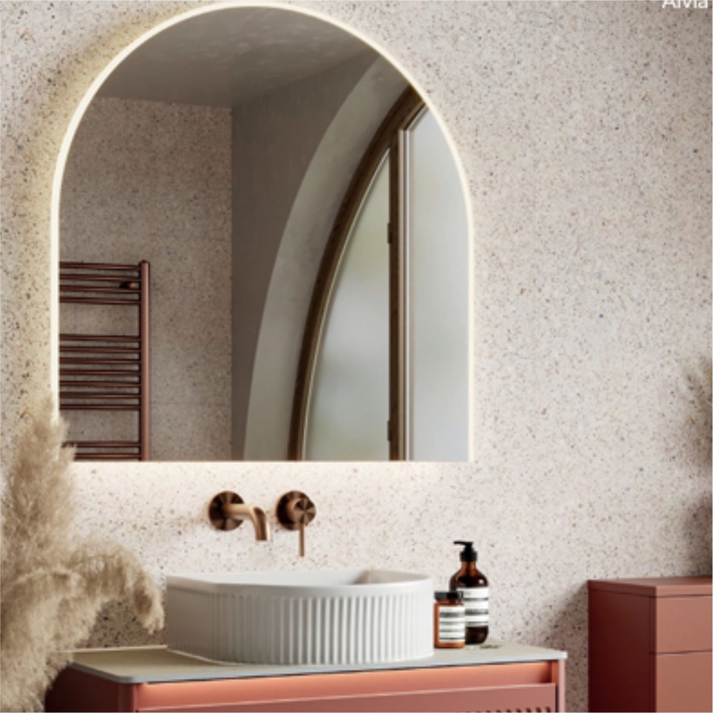 Design: The Alvia mirror’s slim profile and frameless or metal-framed variants complement modern, industrial, and luxury bathroom styles. Its edge-to-edge LED illumination ensures even lighting without shadows, while the minimalist form saves space.